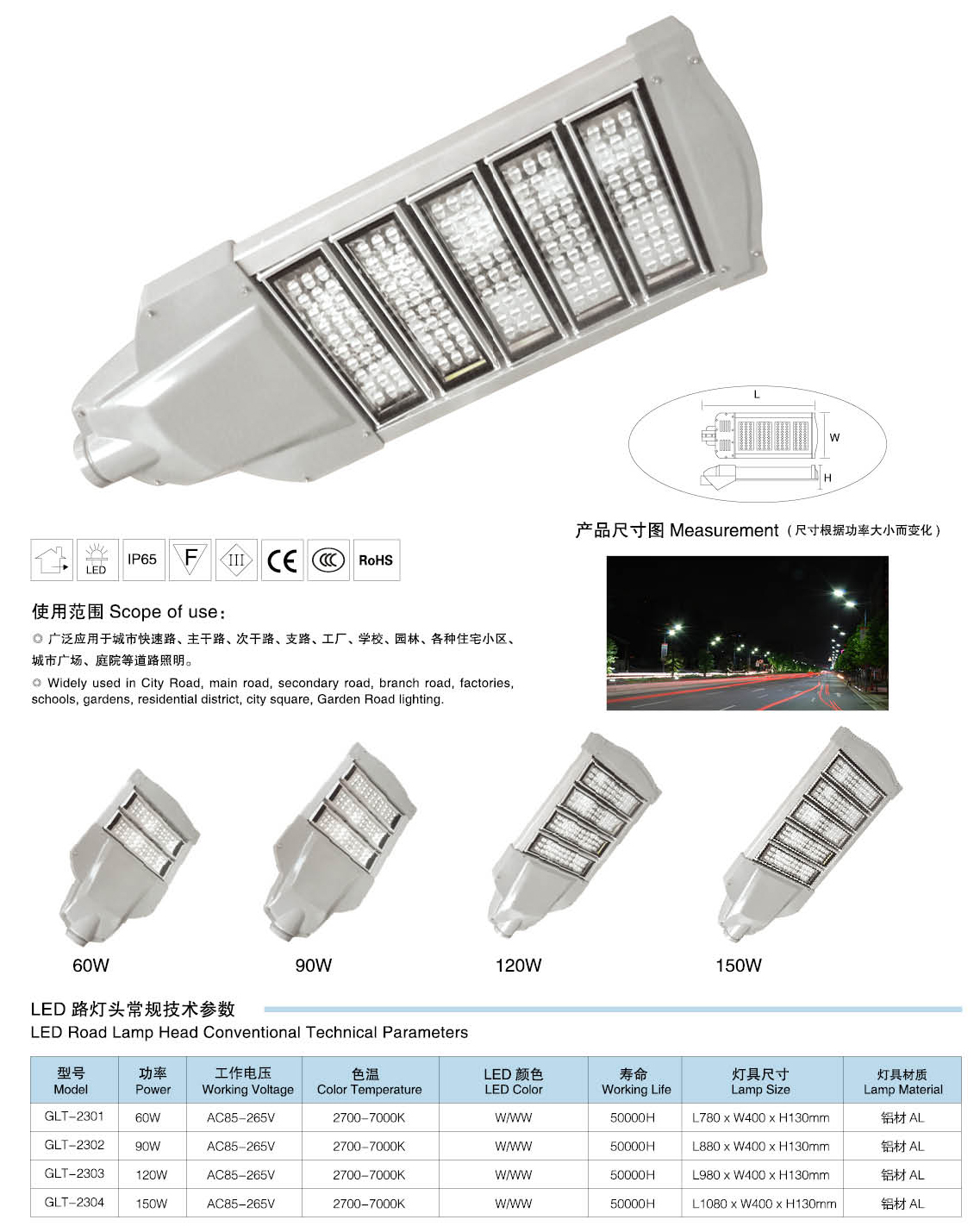 燈具參數:60W、90W、120W、150W